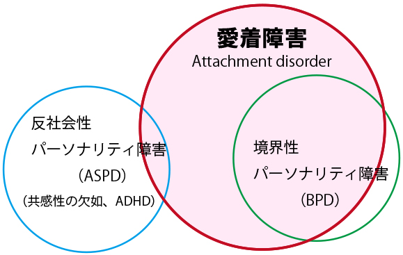 愛着障害は境界性パーソナリティ障害(BPD: Borderline Personality Disorder)と密接な関係があります。愛着理論をベースにいくつかの要因が重なった時に境界性パーソナリティー障害となります。